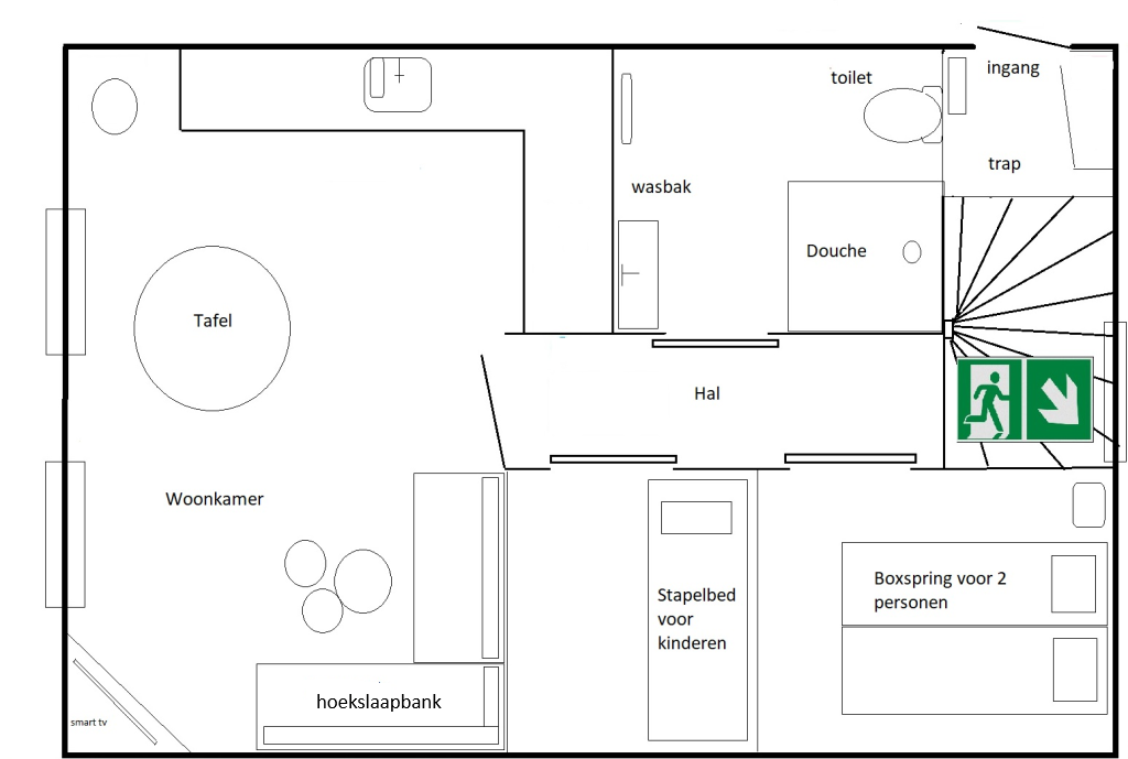 Onze B&B beschikt over een hal voor jassen en schoenen, een kamer met 2 persoon boxspring, een kamer met stapelbed, een ruime badkamer met douche en toilet, een zitgedeelte en een airco.